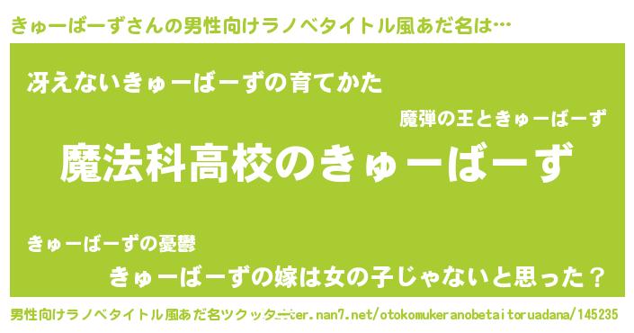 | 胡散臭い通販商品みたいなあだ名 | 『ガンによく効く高麗人参…その名も「きゅーばーず」』 |