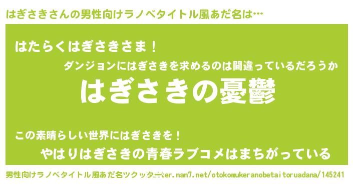 | 胡散臭い通販商品みたいなあだ名 | 『モテモテ間違いなし水晶球…その名も「はぎさき」』 |