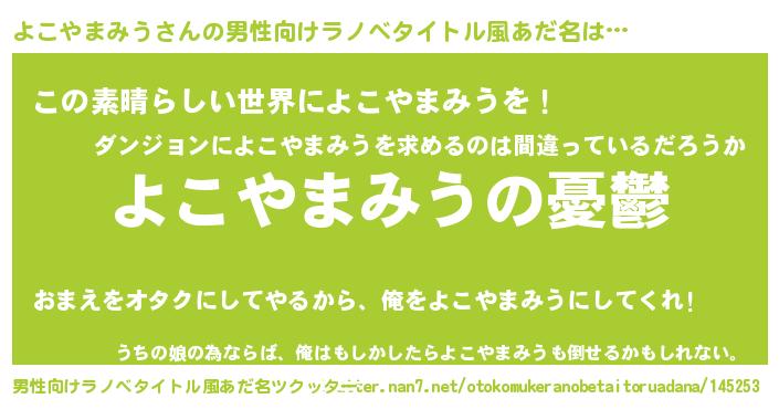 | 胡散臭い通販商品みたいなあだ名 | 『必ず成功する霊験あらたかなお札…その名も「よこやまみう」』 |