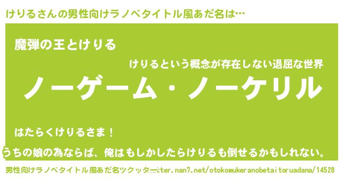 | 女子向けラノベタイトル風あだ名 | 『けりる恋絵巻』『けりるの婚約者』 |
