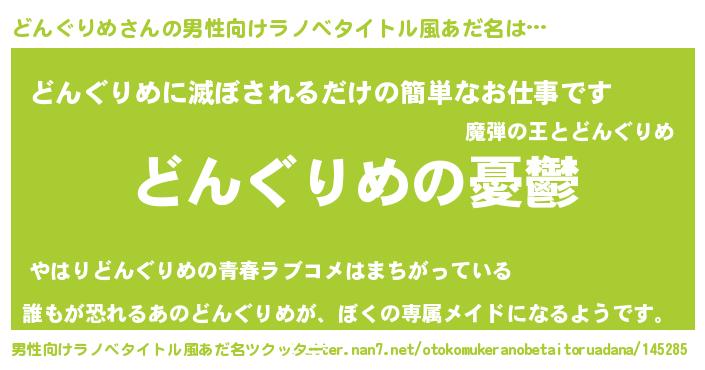 | 女子向けラノベタイトル風あだ名 | 『(仮)どんぐりめのやんごとなき事情』 |