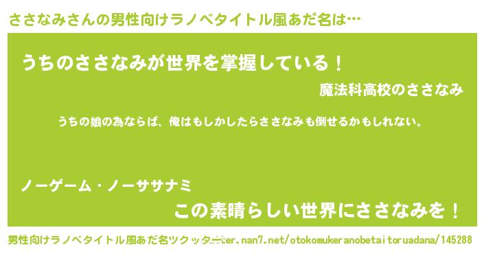 | 意味不明あだ名 | 『ささなみフォーエバー』『自称ささなみ』 |
