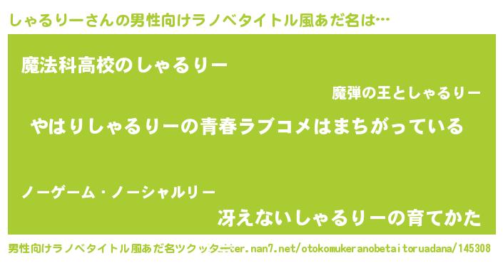 | 女子向けラノベタイトル風あだ名 | 『しゃるりー伯爵の花嫁』 |