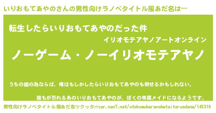 | 女子向けラノベタイトル風あだ名 | 『いりおもてあやの恋絵巻』 |
