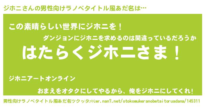 | 胡散臭い通販商品みたいなあだ名 | 『世界中を虜にした世界で10本だけ現存している希少なブランデー…その名も「ジホニ」』 |