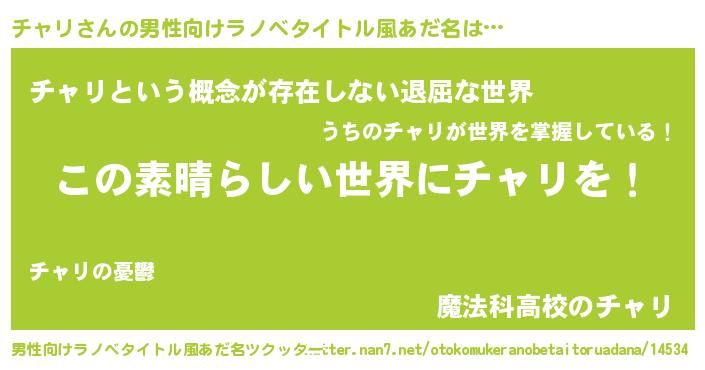 | 意味不明あだ名 | 『住所不定無職チャリ(5歳)』『自称チャリ』 |