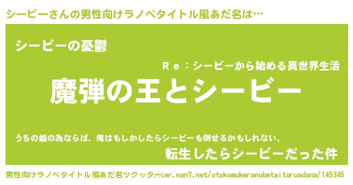 | 女子向けラノベタイトル風あだ名 | 『シービーが死なない童話 林檎のシービーの診療簿』 |