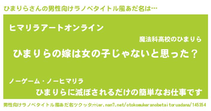 | 女子向けラノベタイトル風あだ名 | 『ひまりら様がみてる』 |