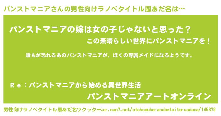 | 胡散臭い通販商品みたいなあだ名 | 『来世でも幸せになれる健康食品…その名も「パンストマニア」』 |