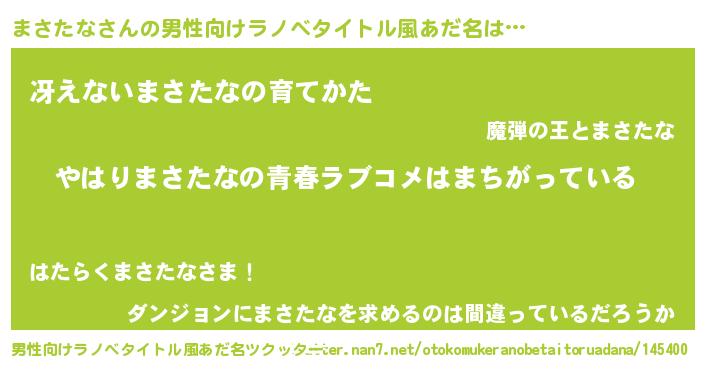 | 女子向けラノベタイトル風あだ名 | 『まさたな伯爵の花嫁』 |