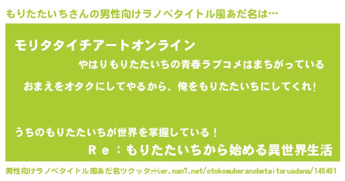 | 女子向けラノベタイトル風あだ名 | 『もりたたいち夫妻のなれそめ』 |