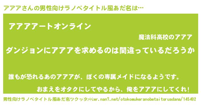 | 意味不明あだ名 | 『とにかく怪しいアアア』『自称アアア』 |