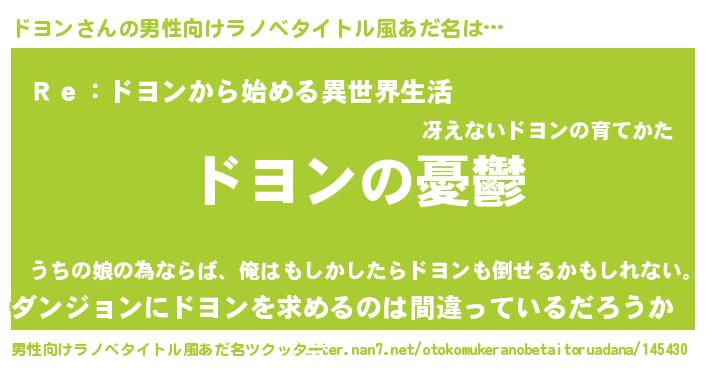 | 女子向けラノベタイトル風あだ名 | 『(仮)ドヨンのやんごとなき事情』 |