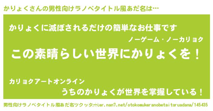 | 意味不明あだ名 | 『住所不定無職かりょく(6歳)』 |