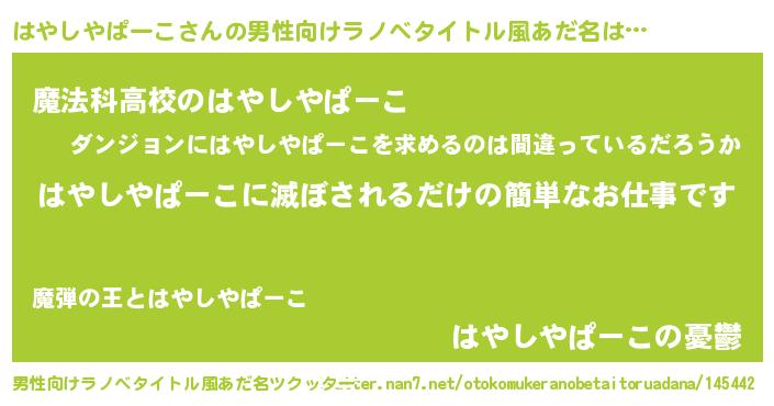 | 意味不明あだ名 | 『自称はやしやぱーこ』 |