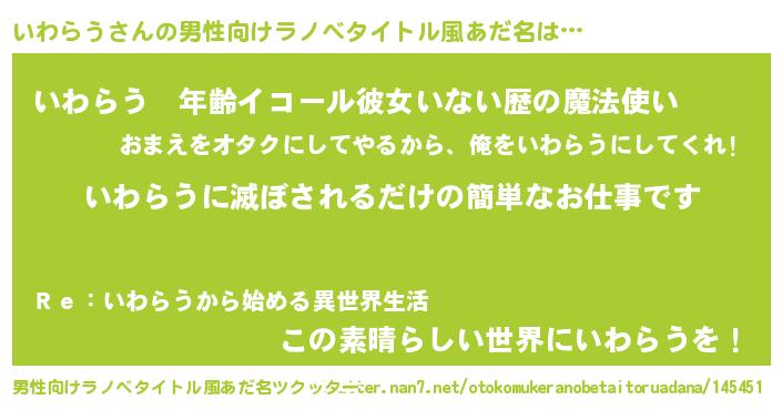 | ヒーロー風カッコイイあだ名 | 『仮面イワダー』『天空の使者いわらう』 |