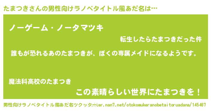 | ヒーロー風カッコイイあだ名 | 『ネオタマツキ』『愛の使者たまつき』 |