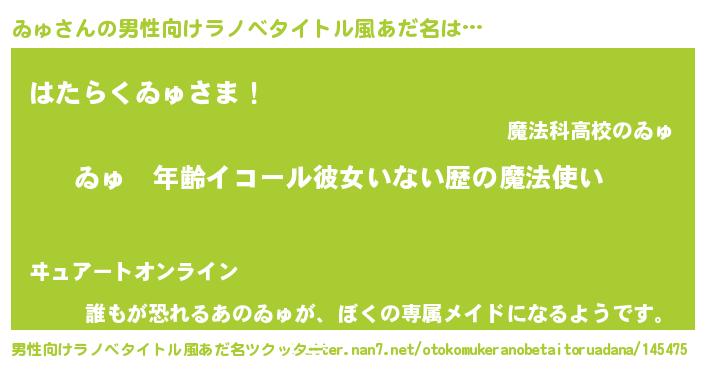 | ヒーロー風カッコイイあだ名 | 『ネオヰュ』『超時空戦士ヰュ』 |