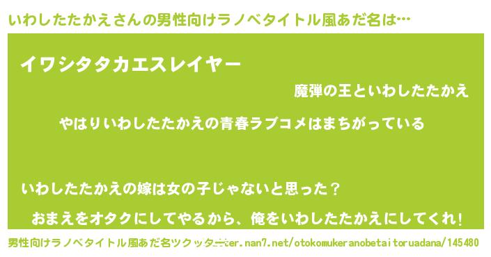 | 女子向けラノベタイトル風あだ名 | 『いわしたたかえの雑貨屋さん』 |