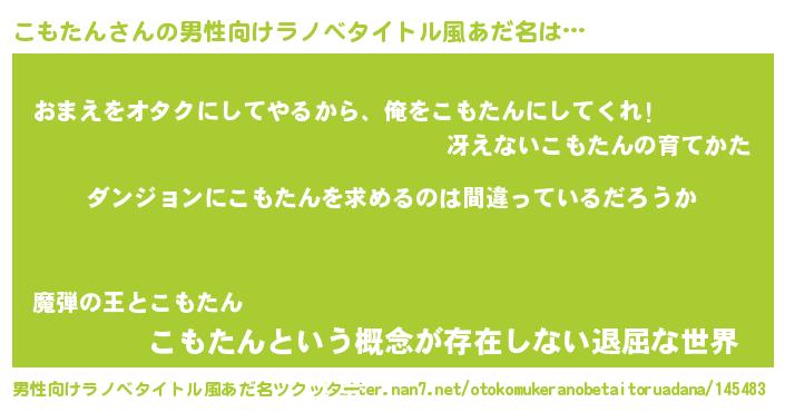 | 胡散臭い通販商品みたいなあだ名 | 『信頼と実績のペンダント…その名も「こもたん」』 |