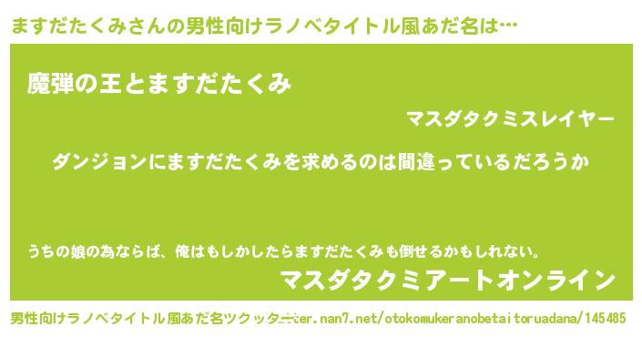 | 女子向けラノベタイトル風あだ名 | 『ますだたくみの卵を拾いまして』 |