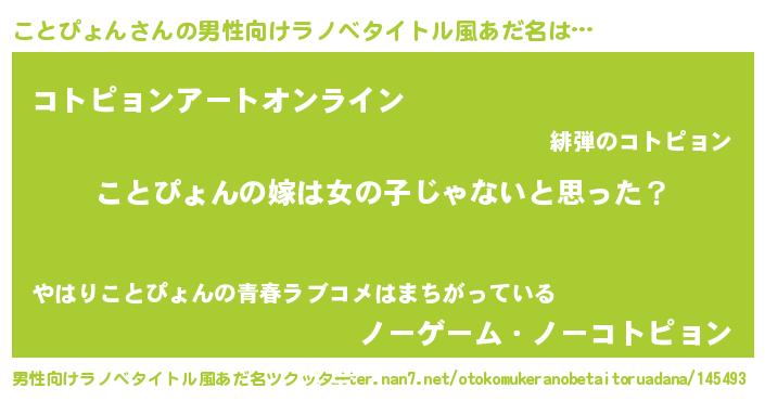 | 女子向けラノベタイトル風あだ名 | 『ことぴょん様がみてる』 |