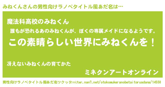 | 女子向けラノベタイトル風あだ名 | 『悪役みねくんに転生したようですが、知った事ではありません』 |