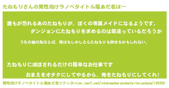 | 胡散臭い通販商品みたいなあだ名 | 『運命の人と巡り会える高級そうな壺…その名も「たねもり」』 |