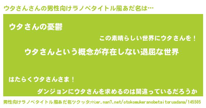 | 胡散臭い通販商品みたいなあだ名 | 『絶対に幸福をもたらす健康食品…その名も「ウタさん」』 |