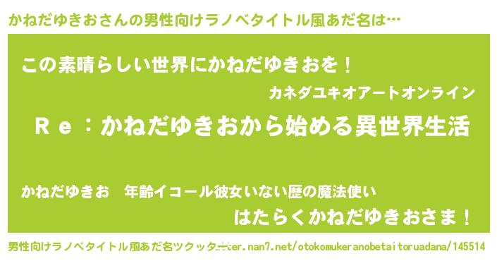 | 女子向けラノベタイトル風あだ名 | 『かねだゆきおストレイドッグス』 |