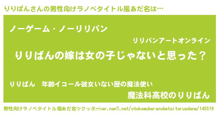 | 女子向けラノベタイトル風あだ名 | 『りりばんの卵を拾いまして』 |