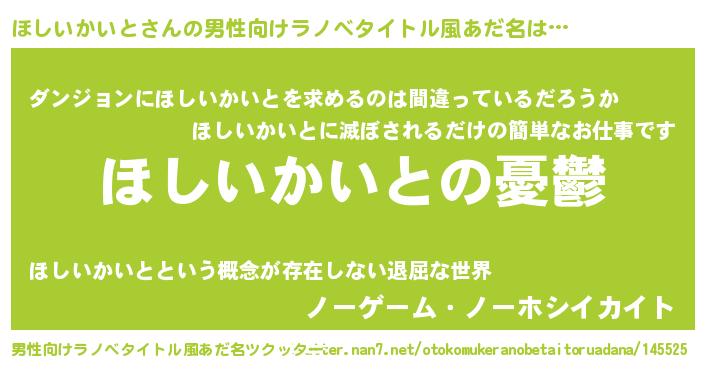 | 胡散臭い通販商品みたいなあだ名 | 『必ず成功するブレスレット…その名も「ほしいかいと」』 |
