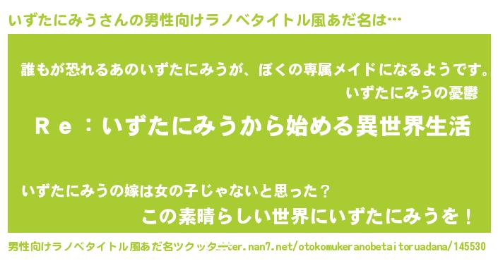 | 意味不明あだ名 | 『自称いずたにみう』 |