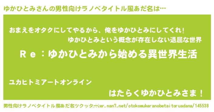 | 伝説のあだ名 | 『救世主となる錬金術士ゆかひとみ』 |