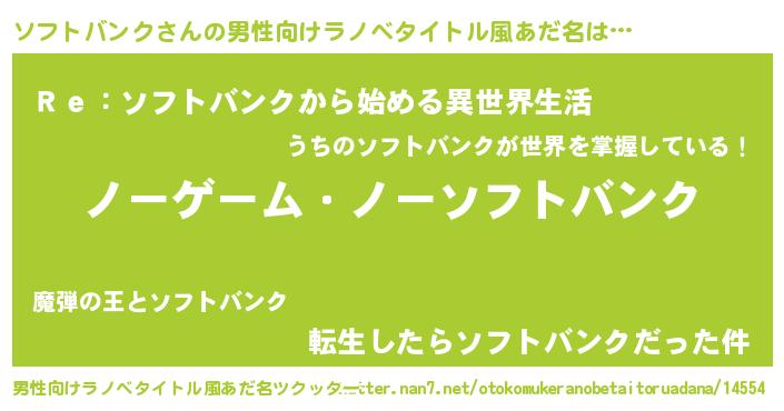 | 女子向けラノベタイトル風あだ名 | 『死神ソフトバンクの再婚』 |