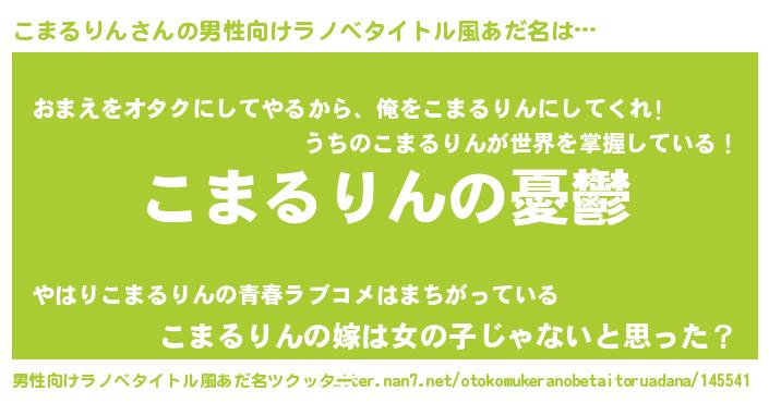 | 女子向けラノベタイトル風あだ名 | 『こまるりん姫と円卓の騎士』 |