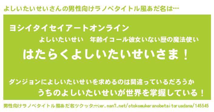 | ヒーロー風カッコイイあだ名 | 『スーパーヨシイタイセイ』 |