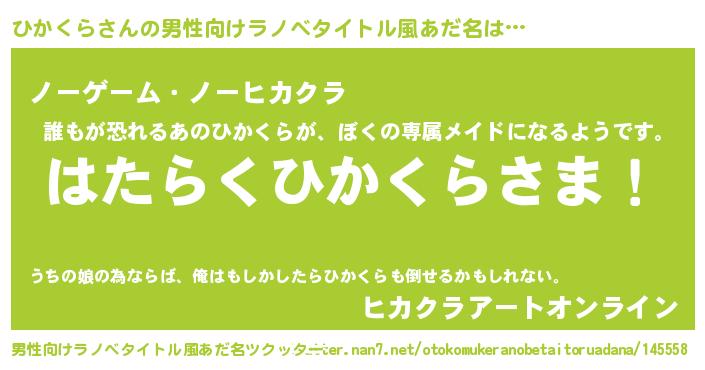 | ヘコむあだ名 | 『ひかにゅー』『ひかくら(震え声)』 |
