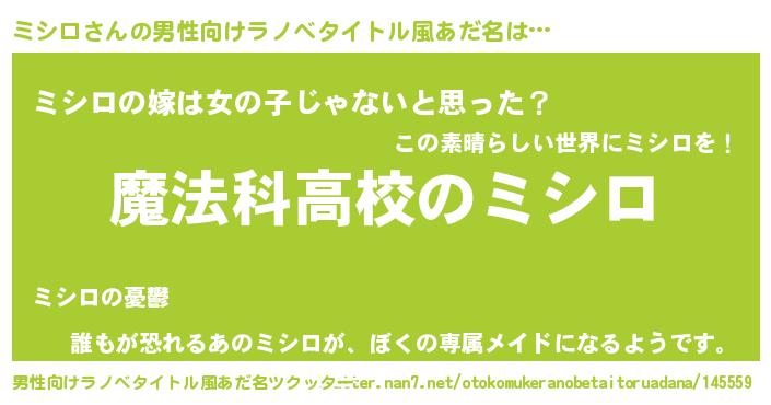 | 意味不明あだ名 | 『自称ミシロ』『とにかく怪しいミシロ』 |