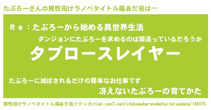 | ヒーロー風カッコイイあだ名 | 『超時空戦士タブロー』『幻影騎士タブ』 |