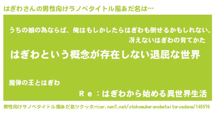 | 胡散臭い通販商品みたいなあだ名 | 『来世でも幸せになれる水素水…その名も「はぎわ」』 |