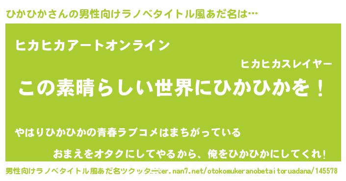 | ヒーロー風カッコイイあだ名 | 『仮面ヒカダー』『スーパーヒカヒカ』 |