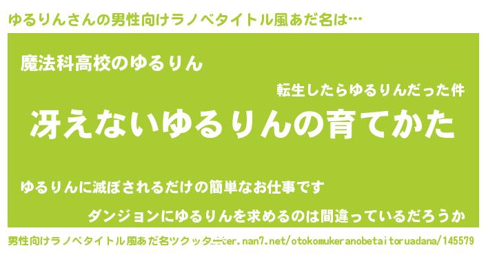 | 女子向けラノベタイトル風あだ名 | 『男装ゆるりんの憂鬱な任務』 |