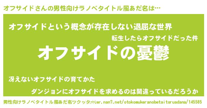 | 女子向けラノベタイトル風あだ名 | 『(仮)オフサイドのやんごとなき事情』 |