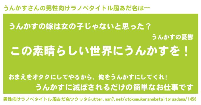 女子向けラノベタイトル風あだ名 | 『悪役うんかすに転生したようですが、知った事ではありません』 |