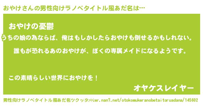 | 女子向けラノベタイトル風あだ名 | 『異世界でカフェおやけを開店しました。』 |