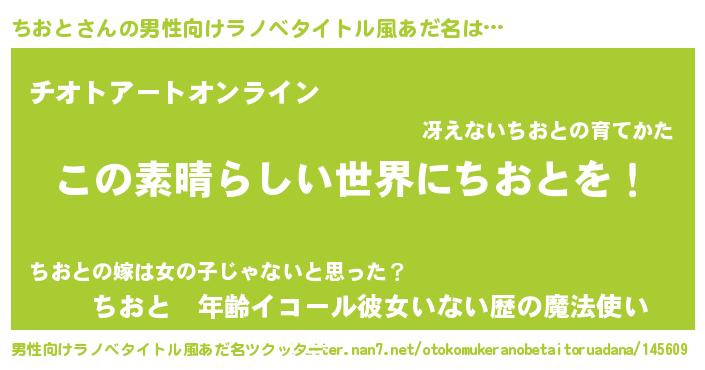 | 意味不明あだ名 | 『住所不定無職ちおと(1歳)』 |
