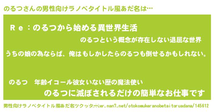 | 女子向けラノベタイトル風あだ名 | 『のるつの婚約者』『闇ののるつ』 |