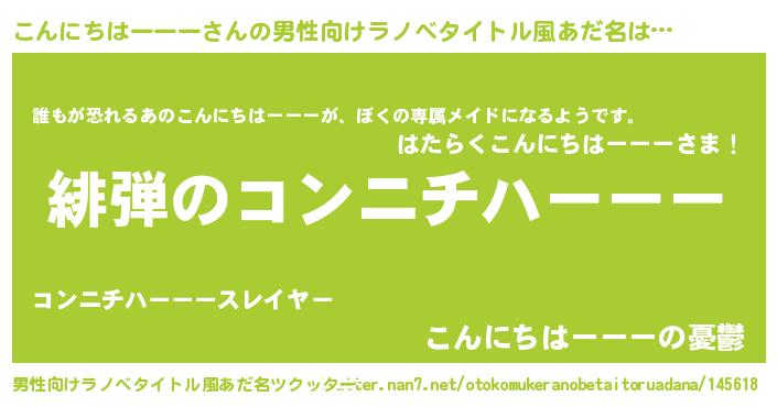 | 胡散臭い通販商品みたいなあだ名 | 『絶対に幸福をもたらす招き猫…その名も「こんにちはーーー」』 |