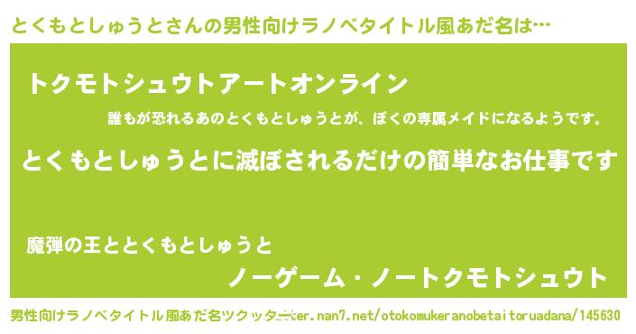 | 伝説のあだ名 | 『封印されし竜騎士とくもとしゅうと』 |